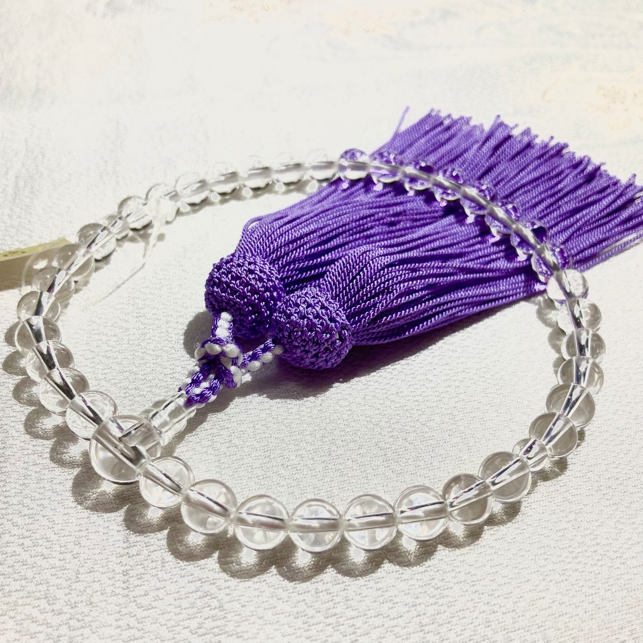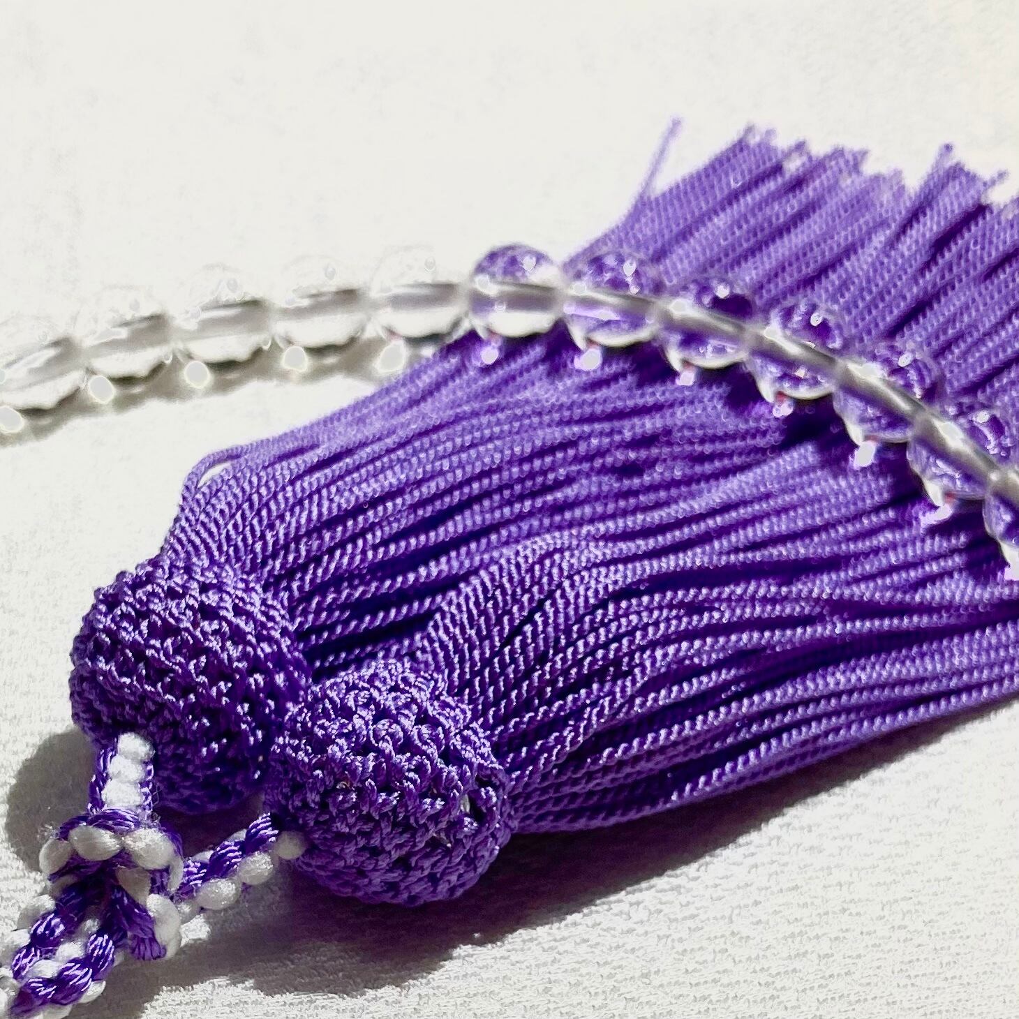 上品な光沢としなやかな正絹房が、水晶の輝きを一層引き立てます。