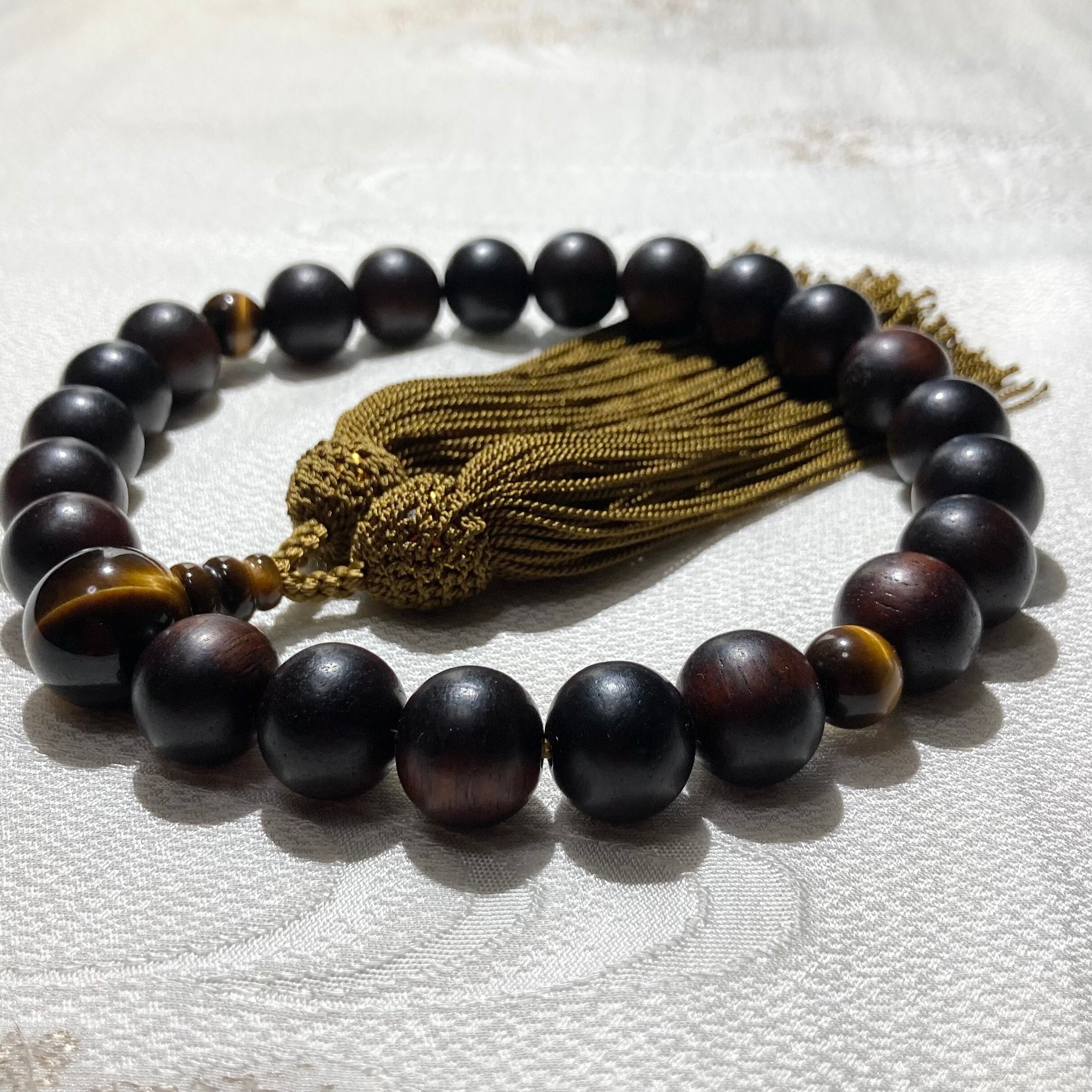 男性用 数珠 素挽縞黒檀 12ミリ 虎目石 9ミリ 正絹房